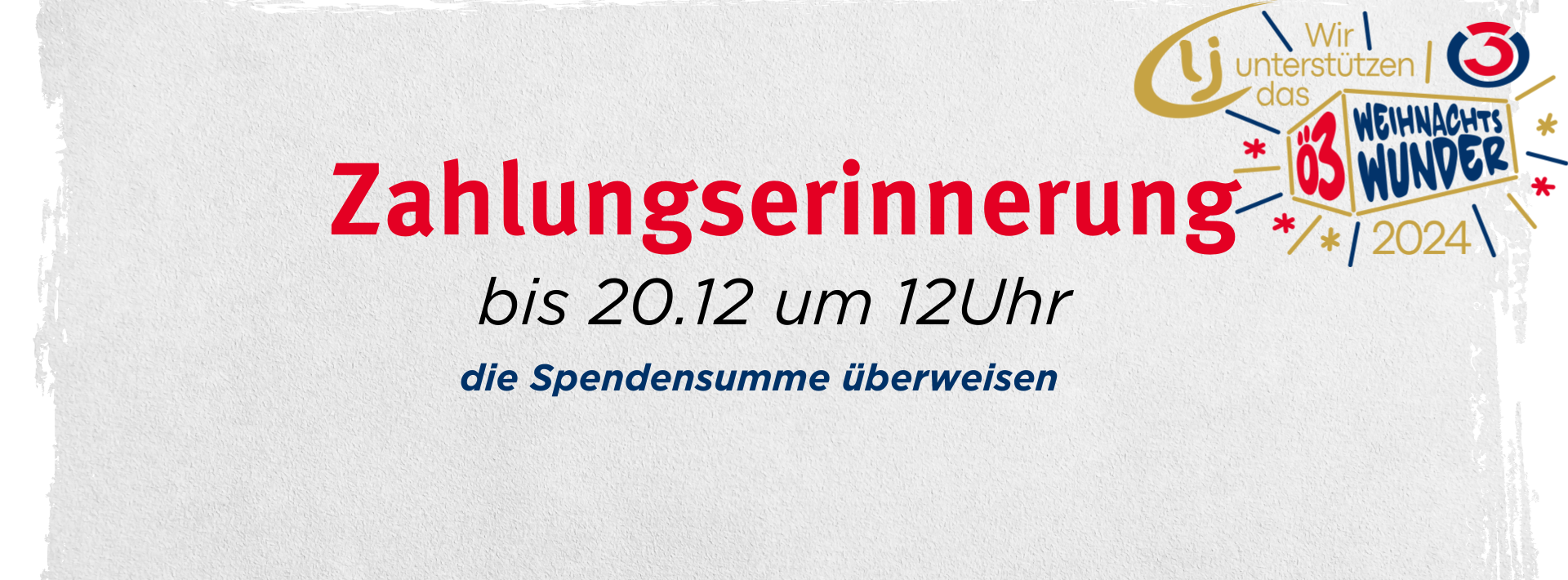 Um die Spenden übergeben zukönnen, brauchen wir bis Freitag, den 20.12.2024 eure Spendensumme auf unserem Spendenkonto überwiesen.