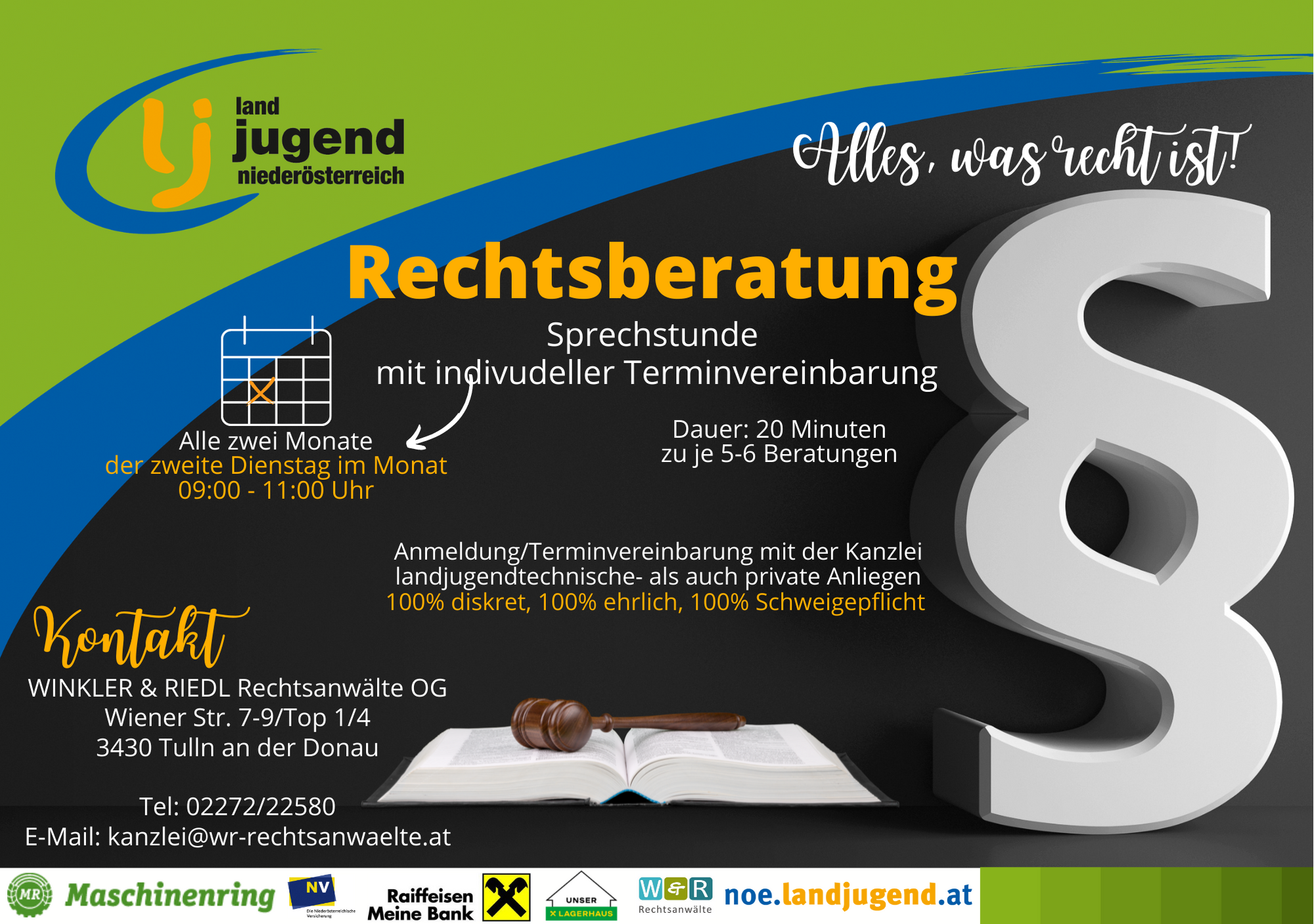 Winkler & Riedl Rechtsanwälte OG bietet exklusive rechtliche Erstberatungen für die Mitglieder der Landjugend an.