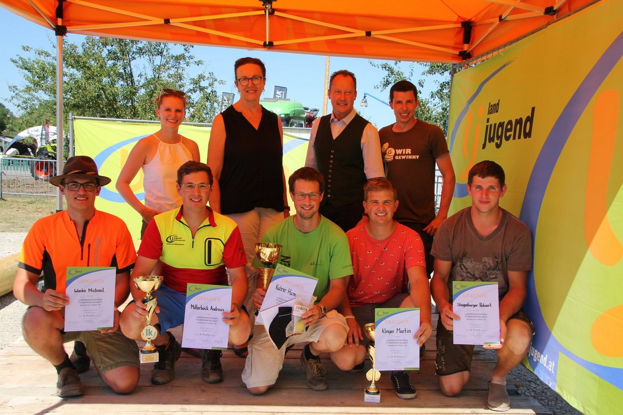 Großartige Leistungen stellten die TeilnehmerInnen beim Landesentscheid Forst der Landjugend Niederösterreich unter Beweis. Dieser fand bei Rekordhitze am Sonntag, den 30. Juni im Rahmen der Wieselburger Messe statt. In den Disziplinen Kombinationsschnitt, Präzisionsschnitt, Fallkerb mit Fällschnitt, Kettenwechseln, Durchhacken, Geschicklichkeitsschneiden und einem Wissensquiz wurden den TeilnehmerInnen so einiges abverlangt! Bei der Bewertung, durch eine Fachjury bestehend aus Lehrkräften der Landwirtschaftlichen Fachschulen und Berater der Forstabteilung der Landes-Landwirtschaftskammer, waren nur wenige Hundertstel oder Millimeter für die beste Leistung ausschlaggebend. Beim Finalbewerb „Entasten“ mussten die besten sechs Teilnehmer und die besten drei Teilnehmerinnen noch einmal Präzision, Schnelligkeit und den geschickten Umgang mit der Motorsäge beweisen. Ein wahres Duell mit der Motorsäge entschied letzten Endes, wer auf dem Siegerpodest steht. Die Motorsägen liefen auf Hochtouren und alle TeilnehmerInnen gaben ihr Bestes! Erstmalig gab es einen „Forst-Cup“ der Landjugend Niederösterreich, wo bei allen drei Gebietsentscheiden die gesammelten Punkte zum Gesamtsieg zählen. Bei dieser Wertung kam Martin Klinger in der Kategorie Herren (Bezirk Hainfeld-Lilienfeld) und Christina Vogler in der Kategorie Damen (Bezirk Gmünd) als Gesamtsieger hervor. Abg. z. NR Alois Rosenberger und Vize-Präsidentin der Landes-Landwirtschaftskammer NÖ Theresia Meier gratulieren den SiegerInnen! Die Platzierungen beim Landesentscheid Forst: Burschen über 18: 1. Johannes Kahrer (Bezirk Hainfeld-Lilienfeld) 2. Andreas Mitterböck (Bezirk Hainfeld-Lilienfeld) 3. Martin Klinger (Bezirk Hainfeld-Lilienfeld) Burschen unter 18: 1. Michael Gritsch (Bezirk Triestingtal) 2. Christoph Kahrer (Bezirk Hainfeld-Lilienfeld) Damen: 1. Christina Vogler (Bezirk Gmünd) 2. Natalie Üblacker (Bezirk Amstetten) 3. Anita Schwaiger (Bezirk Mank)