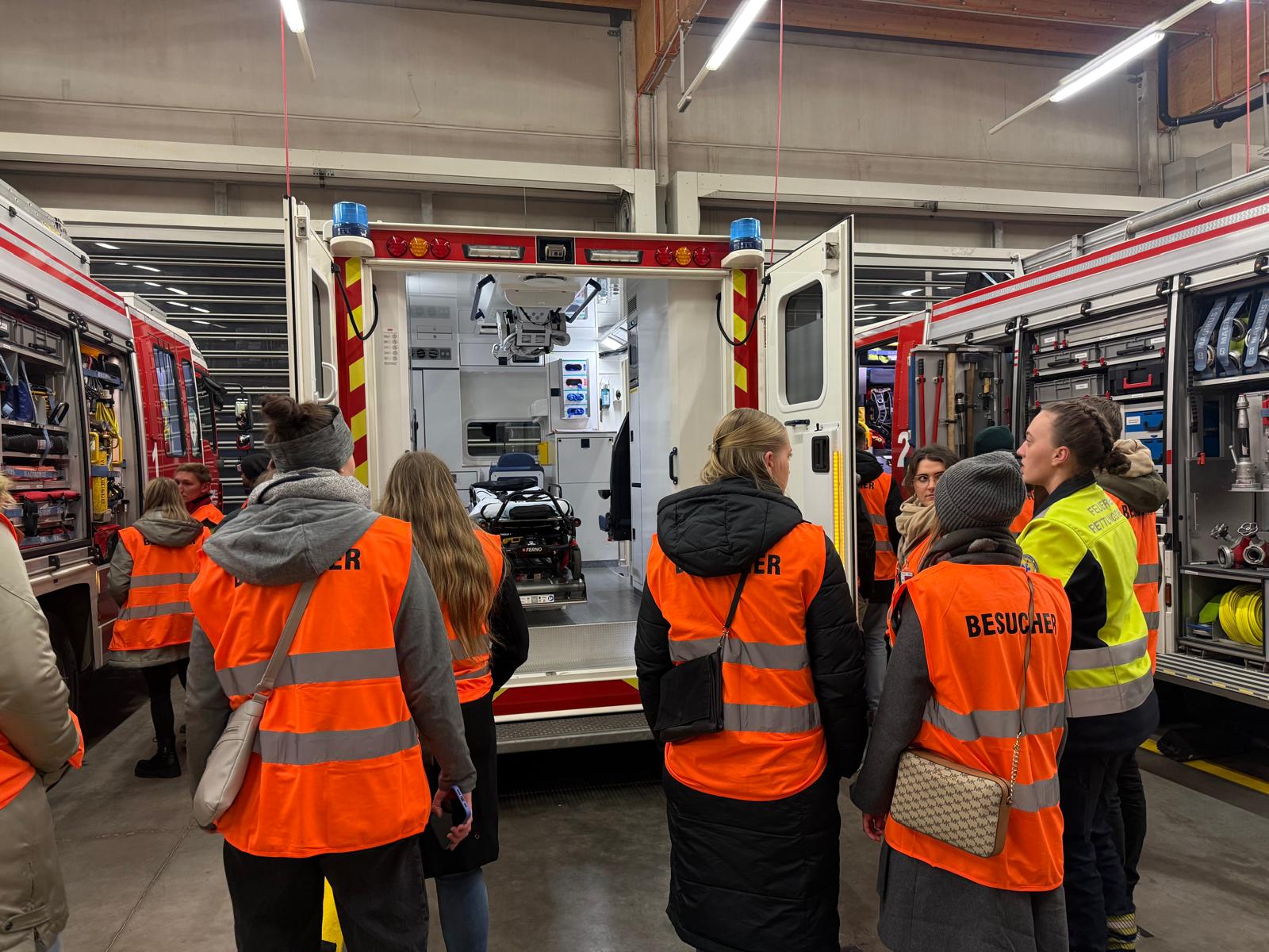 Ein weiteres Highlight war der Besuch der Fahrzeughallen, wo die verschiedensten Fahrzeuge und Geräte besichtigt werden konnten. Dabei blieb auch genügend Zeit für Fragen, die von den Feuerwehrleuten mit großem Engagement beantwortet wurden.