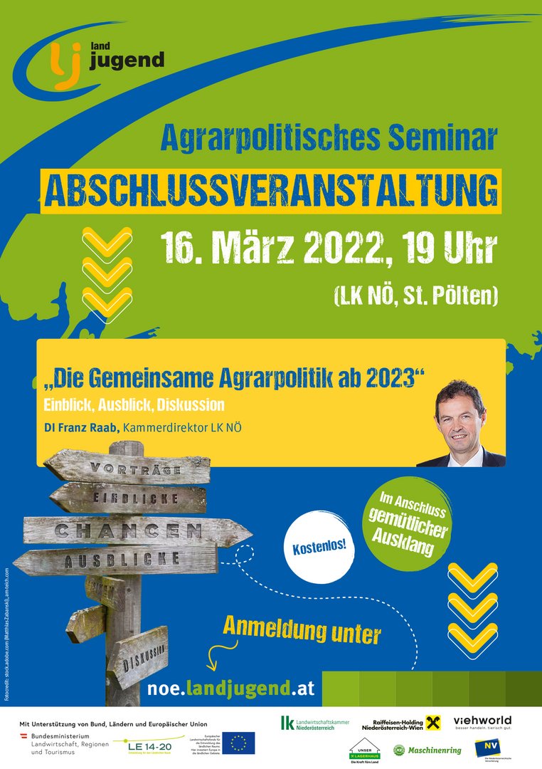 Die neue „Gemeinsame Agrarpolitik“ bringt ab 2023 viele neue Herausforderungen hinsichtlich der Rahmenbedingungen in der Landwirtschaft mit sich. Darum gibt uns Kammerdirektor DI Franz Raab bei einem Informationsabend, einen Einblick sowie einen Ausblick darüber und steht uns abschließend zur offenen Diskussion zur Verfügung.