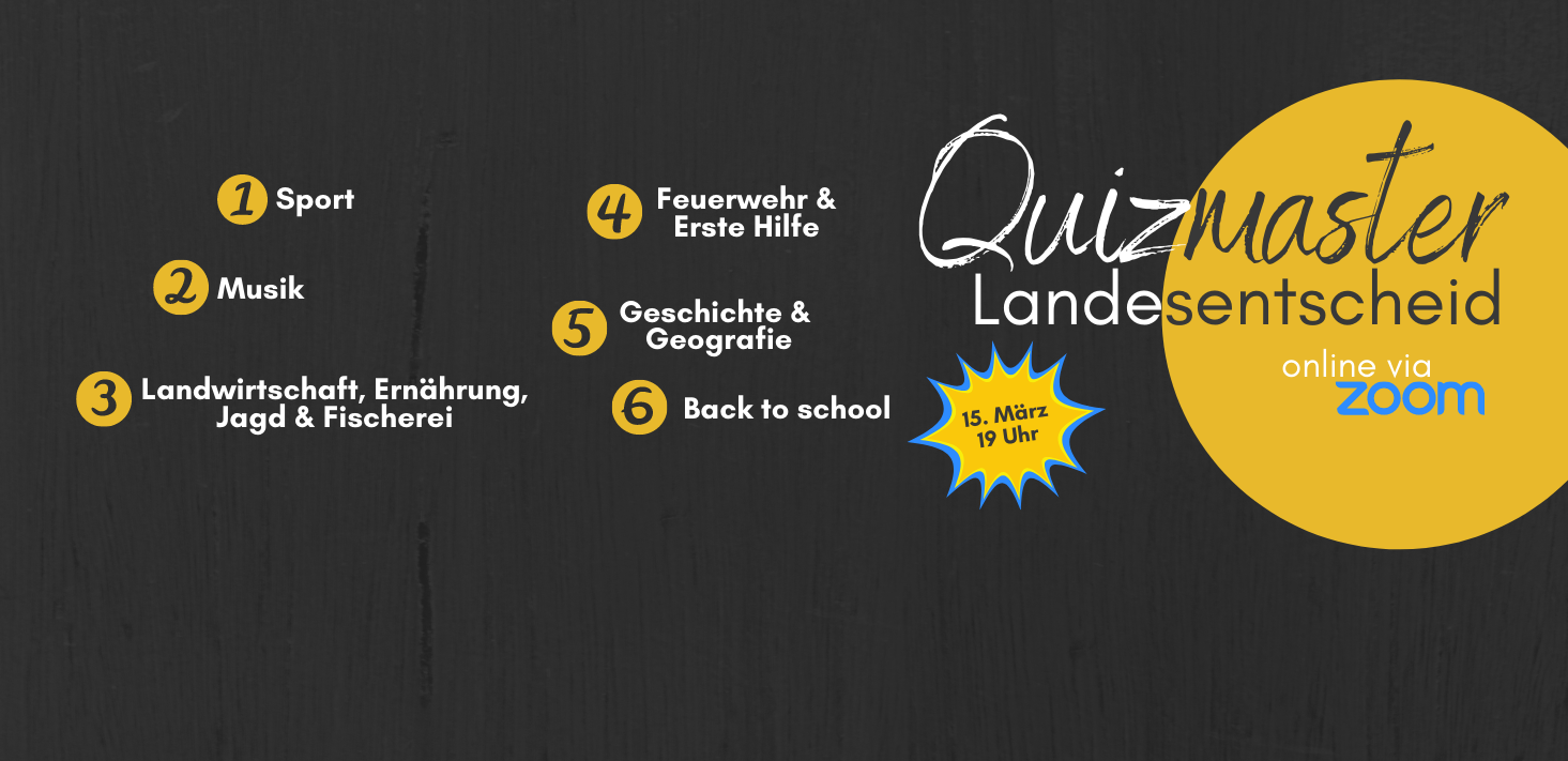Wenn ihr das Team ermittelt habt, das eure Region beim Landesentscheid vertreten soll, meldet es bis spätestens 8. März an. Wir freuen uns auf einen spannenden Landesentscheid Quizmaster!