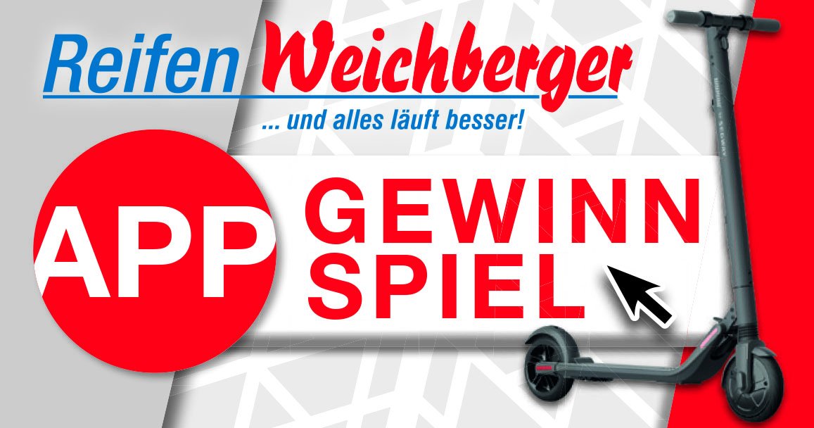 ... mit der Reifen Weichberger-App und etwas Glück neuen E-SCOOTER gewinnen! App im Zeitraum von 26. bis 30. Juni 2019 downloaden und mitspielen!
