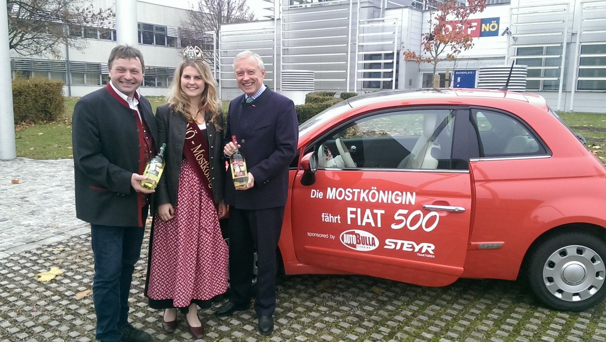 Sichere dir deinen Fiat 500! Das Amt der NÖ Mostkönigin ist begehrt und hat vor allem durch das professionelle Auftreten der Repräsentantinnen der vergangenen Jahre selbst an Ansehen gewonnen. Mehr denn je wird eine Mostkönigin als sympathische Fachfrau wahrgenommen, die viel über Most weiß und dazu auch kompetent und redegewandt Stellung beziehen kann. Die Anforderungen an diese wichtigen Botschafterinnen des niederösterreichischen Mostes sind daher anspruchsvoll und vielfältig. So ist es ihre Aufgabe mit fundiertem Wissen über das Produkt, seine Qualitäten, dessen Genusswert und vieles mehr modern und zeitgemäß zu informieren. Schließlich sind die Mostkönigin und ihre Stellvertreterinnen Botschafterinnen des traditionsreichen Mostobstbaus, ebenso wie der modernen Mostkultur. Bewirb dich bis 17. November bei andreas.ennser(at)amstetten.lk-noe.at