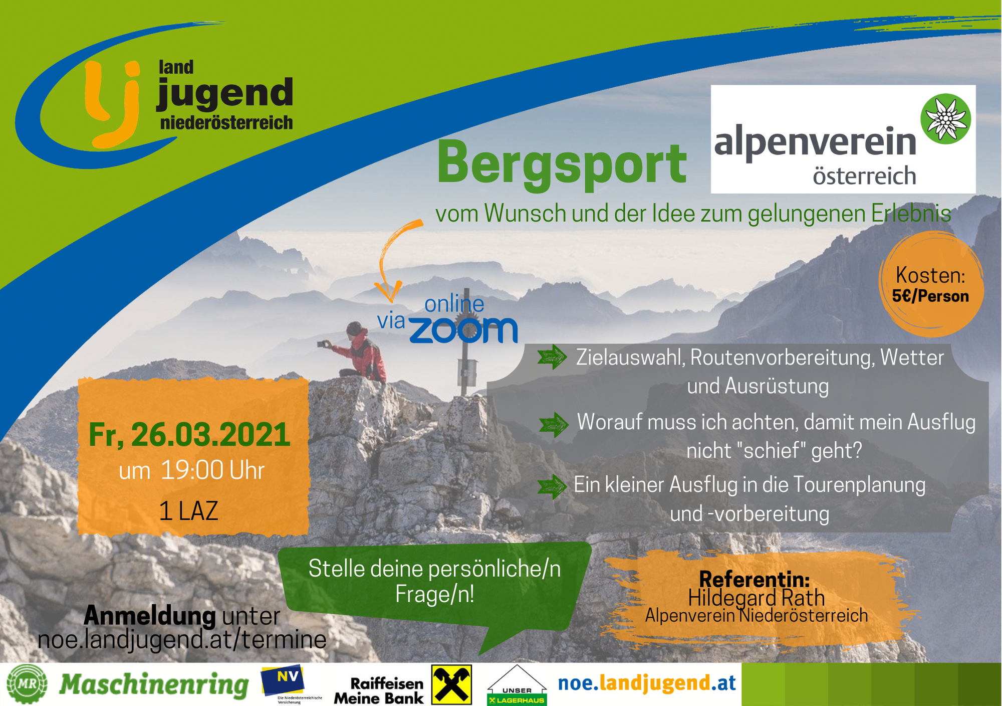 Nützliches zur Zielauswahl, Routenvorbereitung, Wetter, Ausrüstung uvm. erfahrt ihr in diesem Online-Seminar.