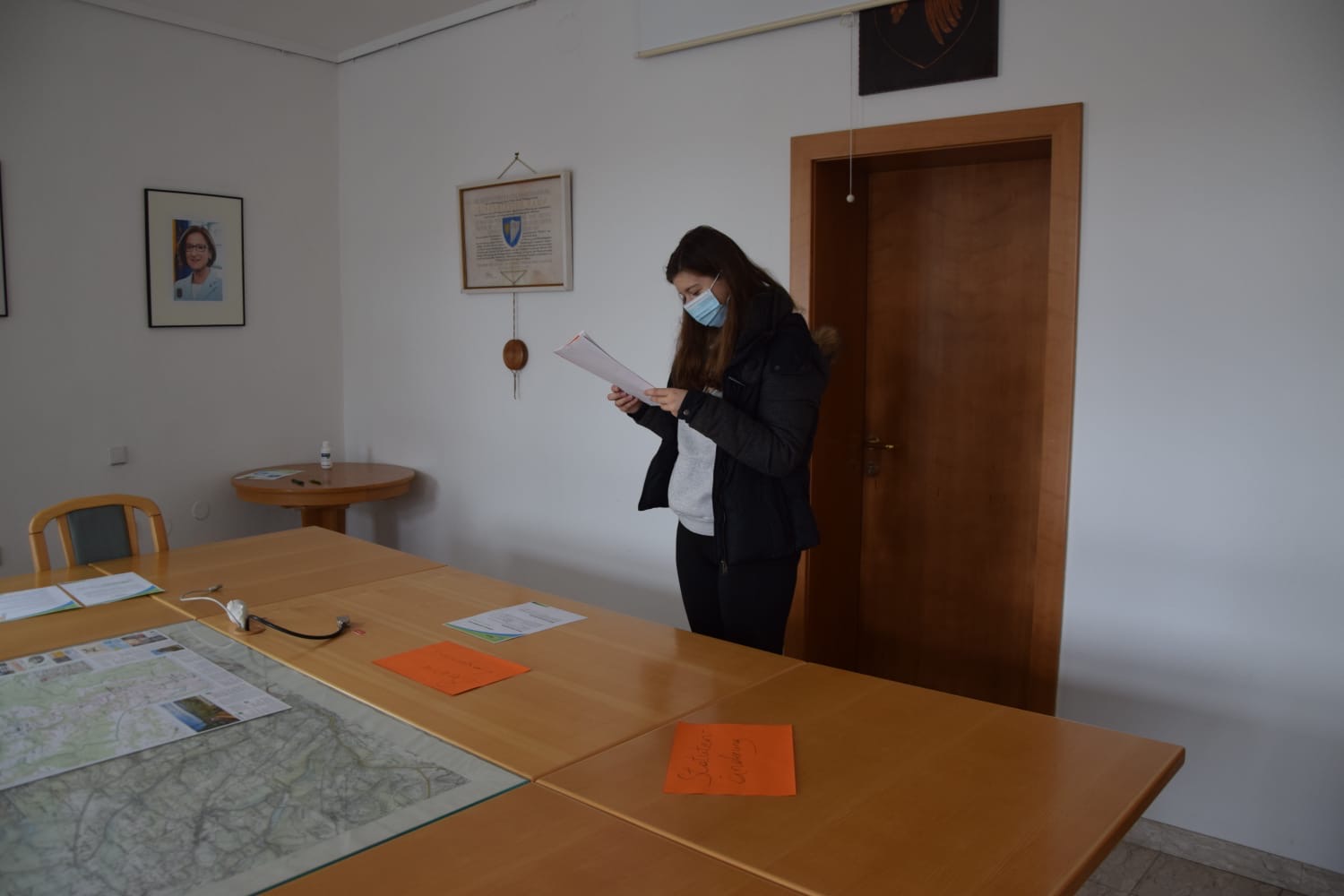 1. Beim Eingang den Mund-Nasenschutz anlegen und die Hände desinfizieren