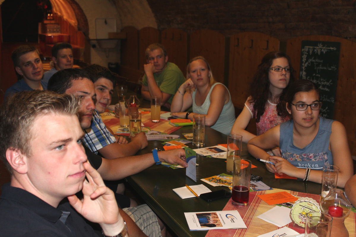 Am Freitag den 12. Juni fand das Viertelstreffen der Landjugend Weinviertel in Röschitz statt. Gestartet wurde mit der Betriebsbesichtigung des Winzerhof Stift. Franz Joseph Stift, der älteste Sohn, ist selbst Funktionär der Landjugend und absolviert momentan die Ausbildung an der Weinbauschule Klosterneuburg. Er berichtete den Jugendlichen über den Betrieb und lud anschließend noch zur Verkostung der eigenen Weine. http://www.winzerhof-stift.at/ Im Anschluss an die Besichtigung konnten noch einige neue Gesichter begrüßt werden, darunter auch die Landesleitung Sandra und Harald. Beim Gasthaus Gruber in Röschitz gab es News zu Projektmarathon und Tat.Ort Jugend, die kommenden Veranstaltungen und Aktivitäten und vieles mehr. Für den Sommerurlaub in der Area47 gibt es noch einige Restplätze also schnell anmelden: http://noelandjugend.at/termine?tx_siwaeventinfo_pi1[event]=131044&tx_siwaeventinfo_pi1[action]=show&tx_siwaeventinfo_pi1[controller]=Event&cHash=43a628441113bf18611c3a0052ad59da