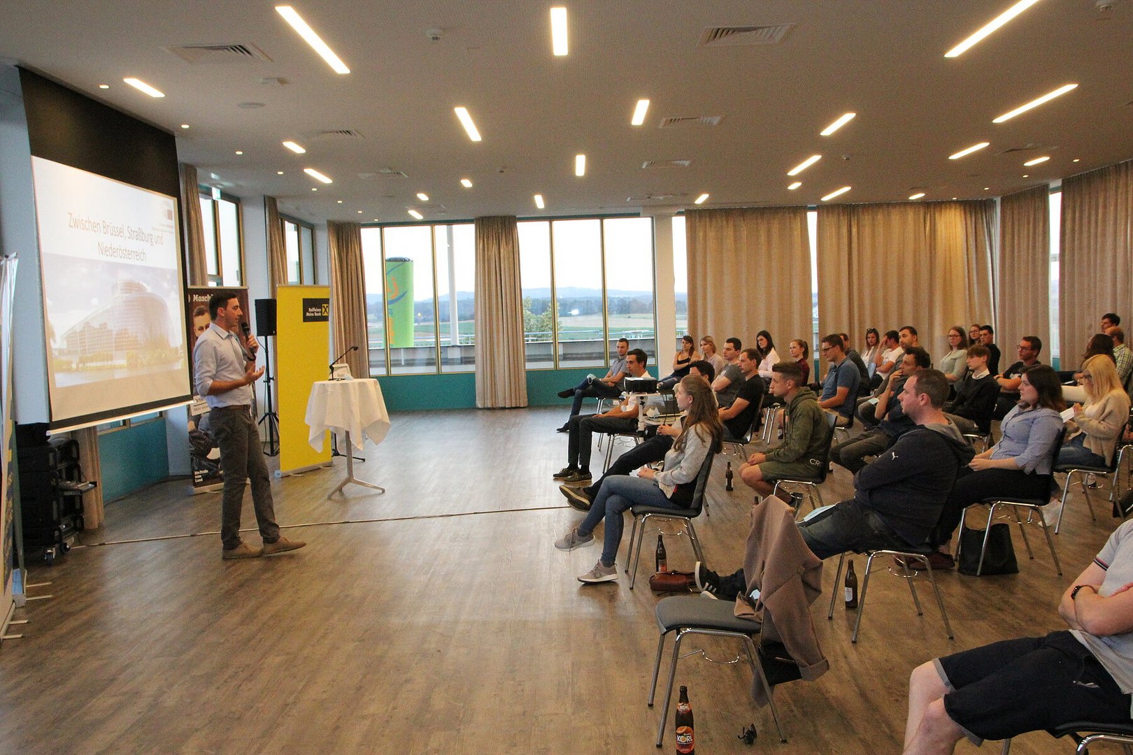 Um zu große Menschenansammlungen zu verhindern, führen wir unsere Veranstaltungen aktuell in kleinerem Rahmen, dafür an mehreren Terminen durch. EU-Parlamentarier Alexander Bernhuber hat sich dankenswerterweise ein zweites Mal Zeit genommen, um unseren Mitgliedern im Weitblick-Saal des Campus Horn interessante Einblicke in sein erstes Jahr als Politiker zu geben. Nach seinem spannenden Vortrag nutzten die etwas mehr als 50 anwesenden Mitglieder noch die Chance, um viele Fragen zu stellen und mehr über die EU und die Arbeit in Brüssel und Straßburg zu erfahren.
