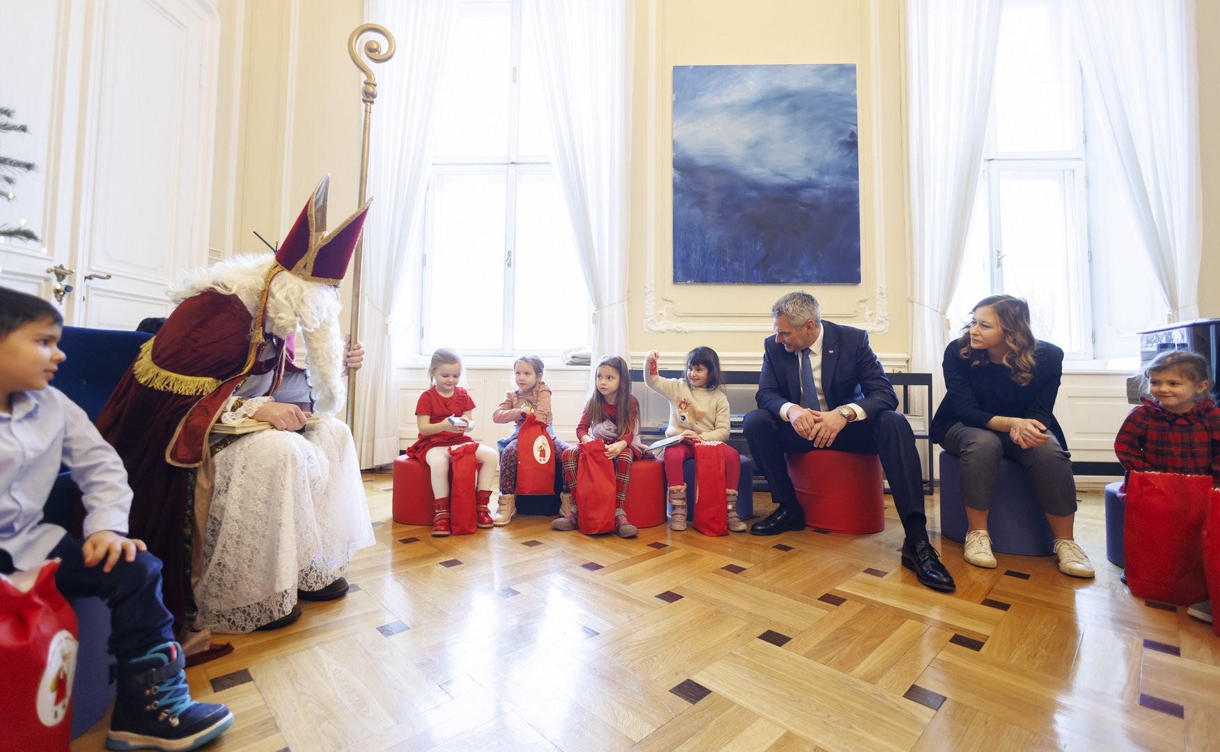 Jahr für Jahr sind in Niederösterreich unzählige Landjugend-Mitglieder als Nikolaus unterwegs, um Kinderaugen zum Leuchten zu bringen. Einer von ihnen hatte heuer einen ganz besoneren Auftritt: Unser Landesobmann-Stv. Johannes Döller durfte den Heiligen aus Myra im Bundeskanzleramt verkörpern, als Jugendstaatssekretärin Claudia Plakolm und Bundeskanzler Karl Nehammer Besuch von Kindergartenkindern bekamen.
